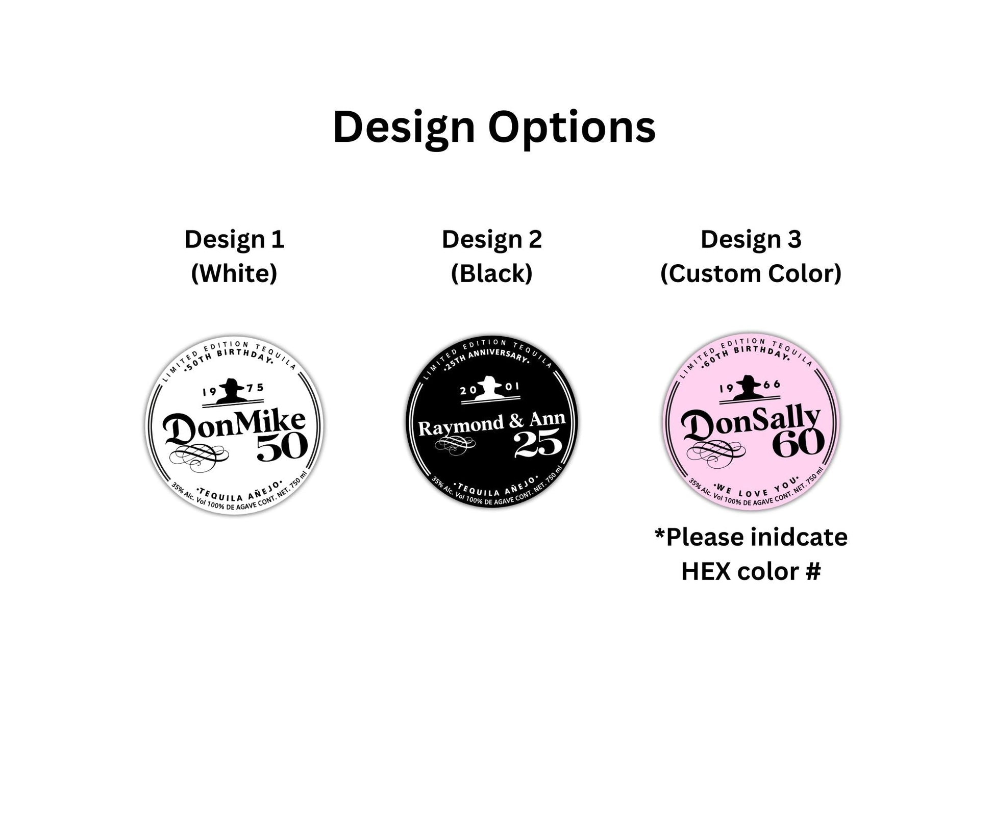 Personalized Tequila Anniversary 750ml Bottle Labels. Pick the label background color you want! Custom for your Special Occasion!