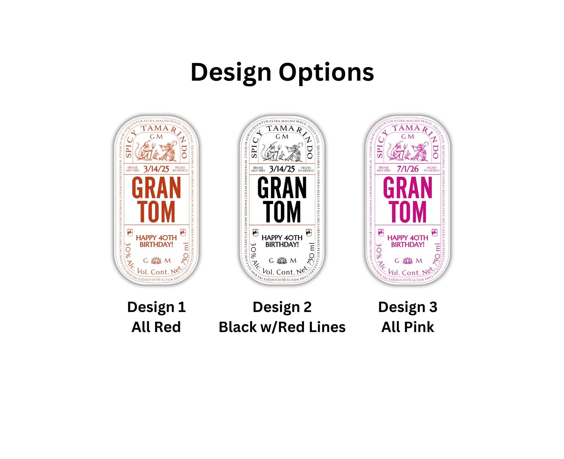 Personalized Tequila Bottle Labels. Labels available with Black, Pink, and Red text. Custom for any Special Occasion!