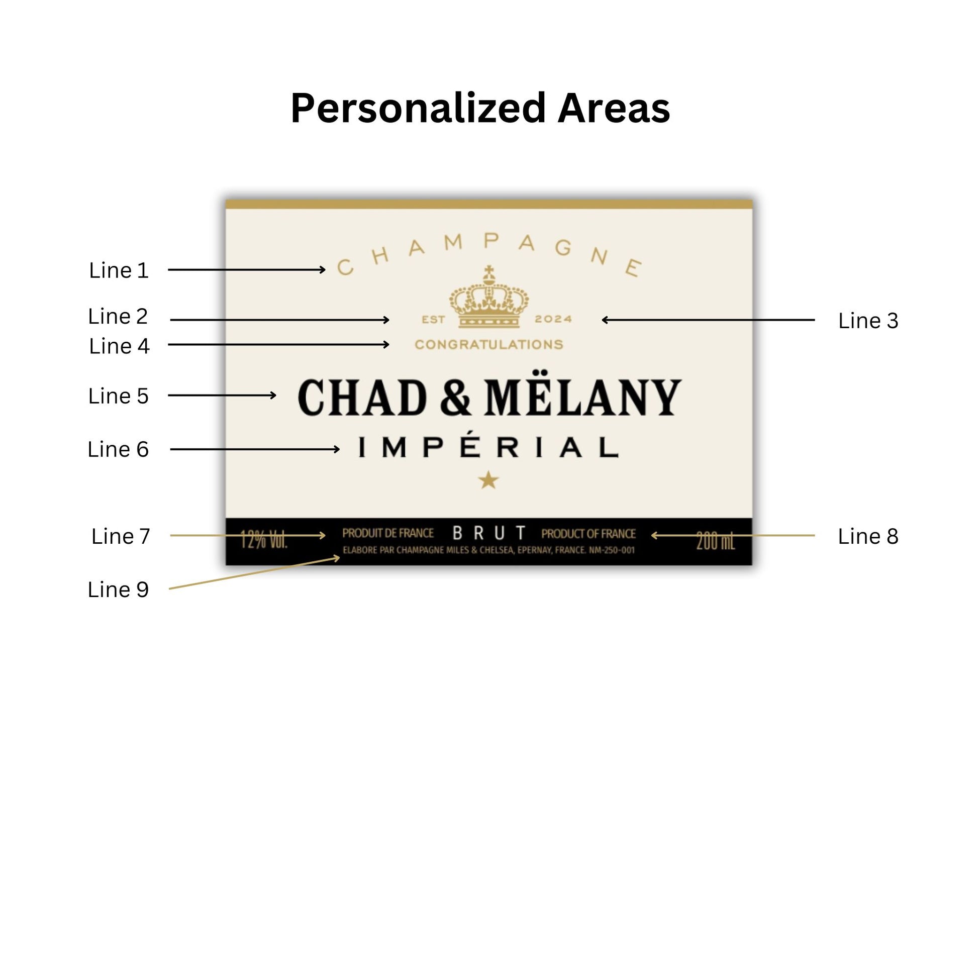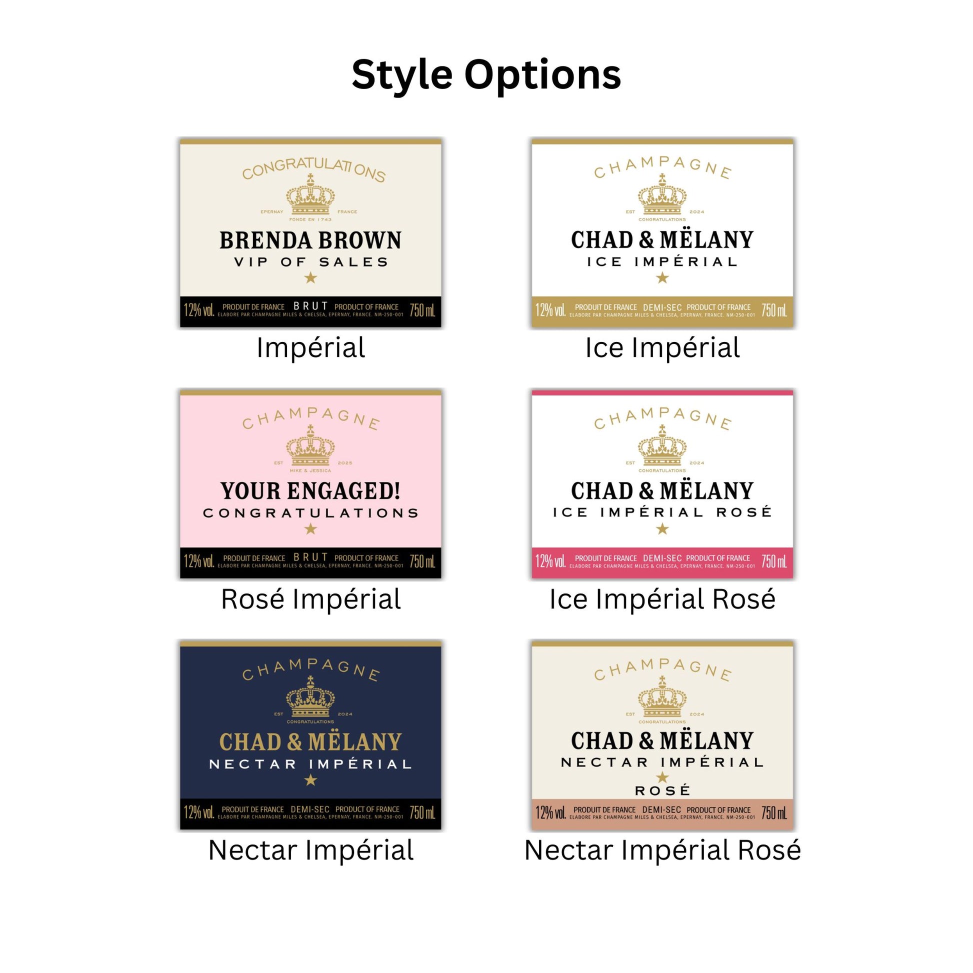 Personalized Champagne Bottle Labels. Available in 200ml Mini and 750ml Bottle Sizes! Choose from 6 label styles. Custom for any Special Occasion. We try to get as close as possible to the original colors.
